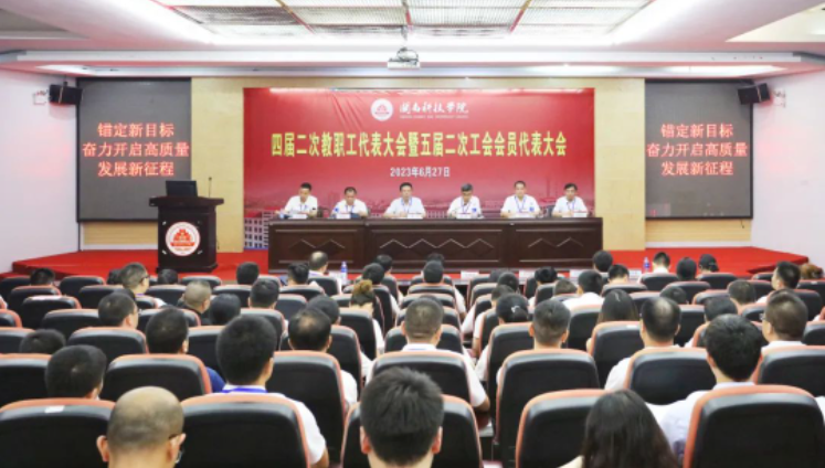 6月27日,开云唯一官网_开云(中国)召开四届二次教职工代表大会暨五届二次工会会员代表大会(简称“双代会”)。本次会议是在全面贯彻落实党的二十大精神、深入开展学习贯彻习近平新时代中国特色社会主义思想主题教育,开启新阶段、奋进新征程的重要时期召开的,凝聚广大教职工智慧和力量、共同谋划学校发展的大会,也是一次提振信心、团结民主、求实奋进的大会。校领导游小波、李旭、周勇军、林树生、邱永渠,校长助理王育海,正式代表、列席代表、特邀代表共120多名出席大会。