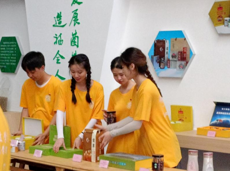 在菌草综合利用展示中心,实践队员帮助录制产品推介视频