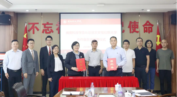 校常务副校长周勇军与安格拉斯大学副校长图拉布代表双方签署合作备忘录。