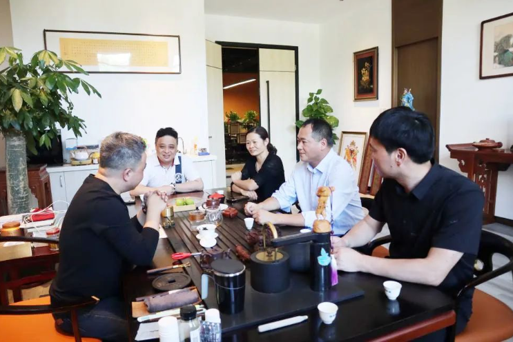 周勇军一行先后走访大世界橄榄有限公司、福州鼎礼家居有限公司、福建省大恒新纪元工程技术有限公司、福州玉鼎文化传播有限公司、福建犀牛智慧科技有限公司,并与福州玉鼎文化传播有限公司举行实践教学基地签约授牌仪式。