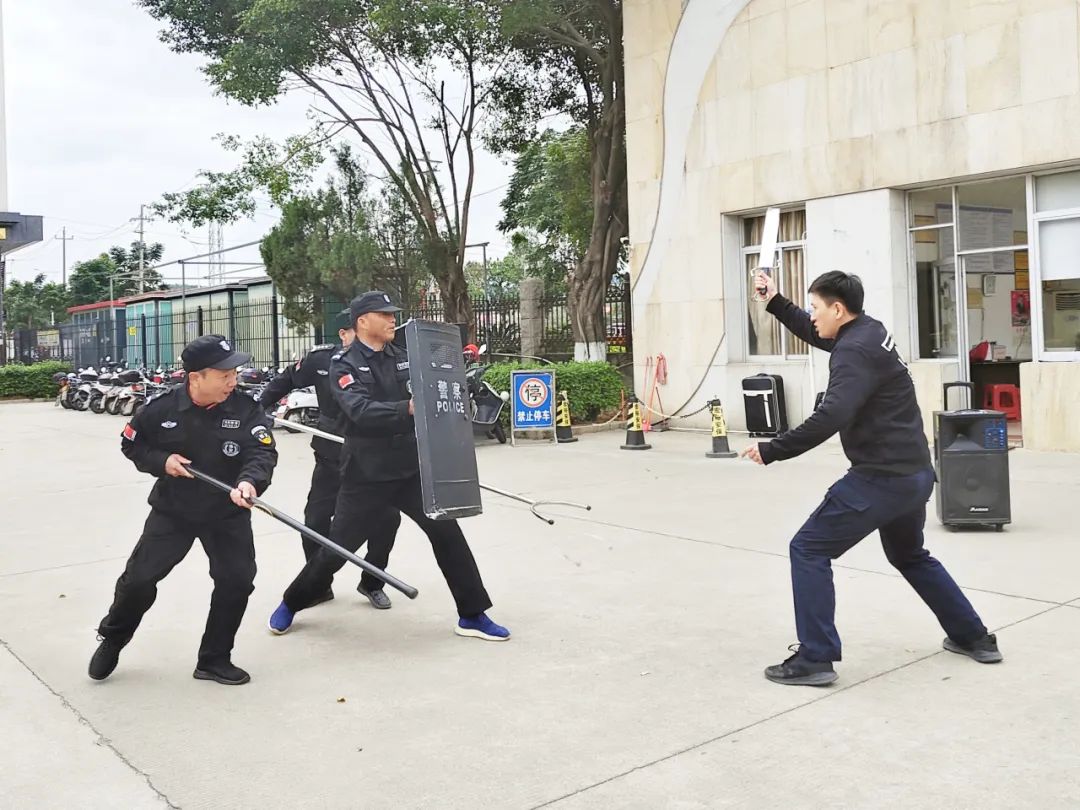 演练结束后,警务实战教官结合高校发生恐怖事件的危害性、突发事件处置常识、防暴装备使用方法等展开系统培训和演练,并进行现场指导。