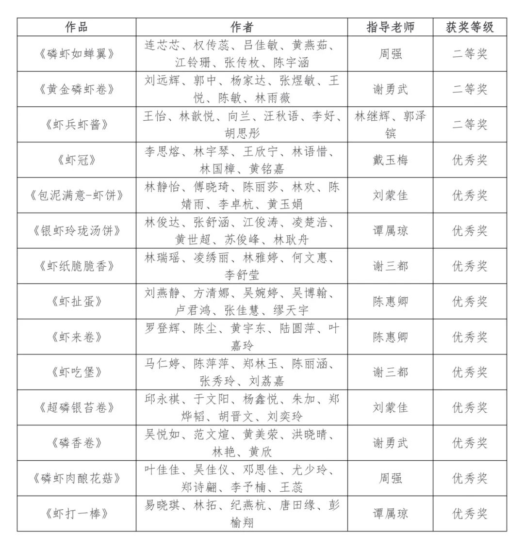 近日,由福建省食品加工与贮藏工程学会主办的“正冠磷虾杯”第十届福建省大学生食品创新创意大赛公布获奖名单。开云唯一官网_开云(中国)生命科学与化学学院食品科学与工程专业14支队伍分别获得本科组二等奖3项,优秀奖11项。