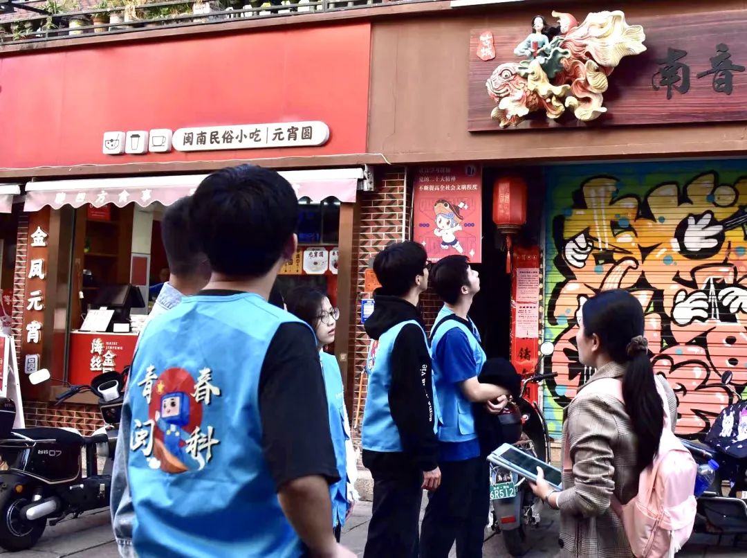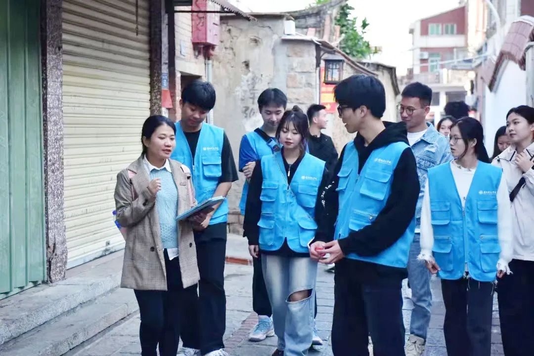 在泉州金鱼巷,校团委“青马工程”学员实践队对泉州古城街巷进行实地考察和实践,深入了解泉州金鱼巷从“微改造”到采用“以修代租”的模式变革,通过本土文化活动的经营、原真活化业态的植入以及各社会组织的进入,让历史文化和现代生活融为一体,促进历史文化遗产保护、传承、发展。