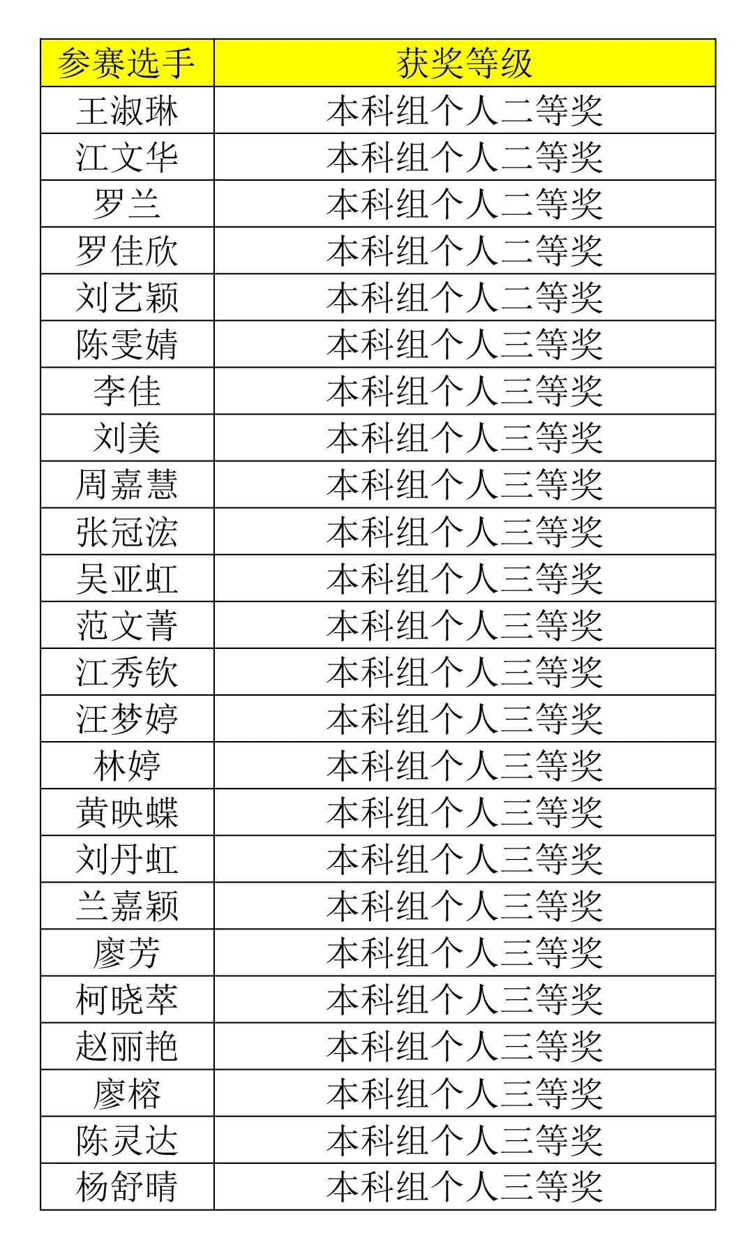 个人奖项获奖名单