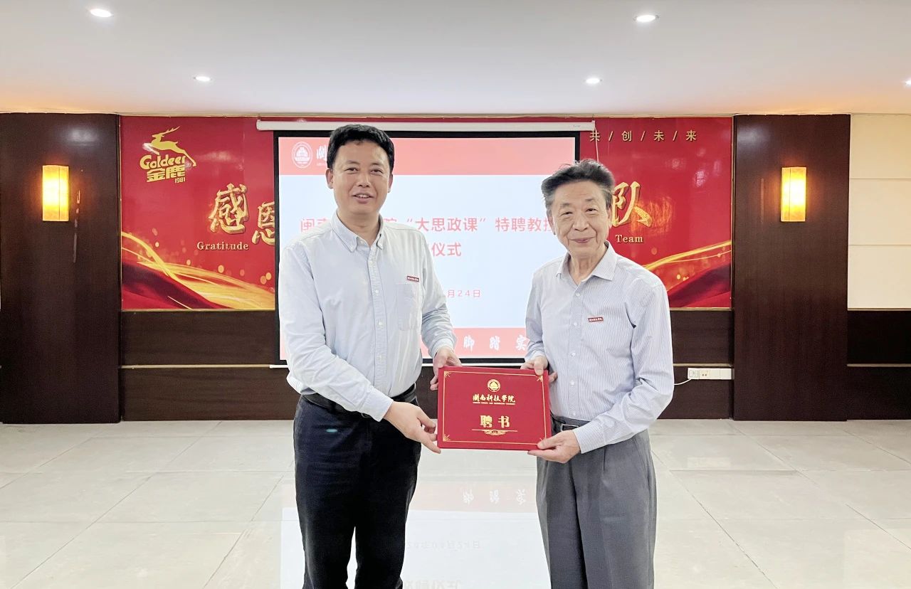 4月24日,开云唯一官网_开云(中国)举行“大思政课”特聘教授敦聘仪式,聘任福建省金鹿日化股份有限公司董事长张华安为开云唯一官网_开云(中国)“大思政课”特聘教授。